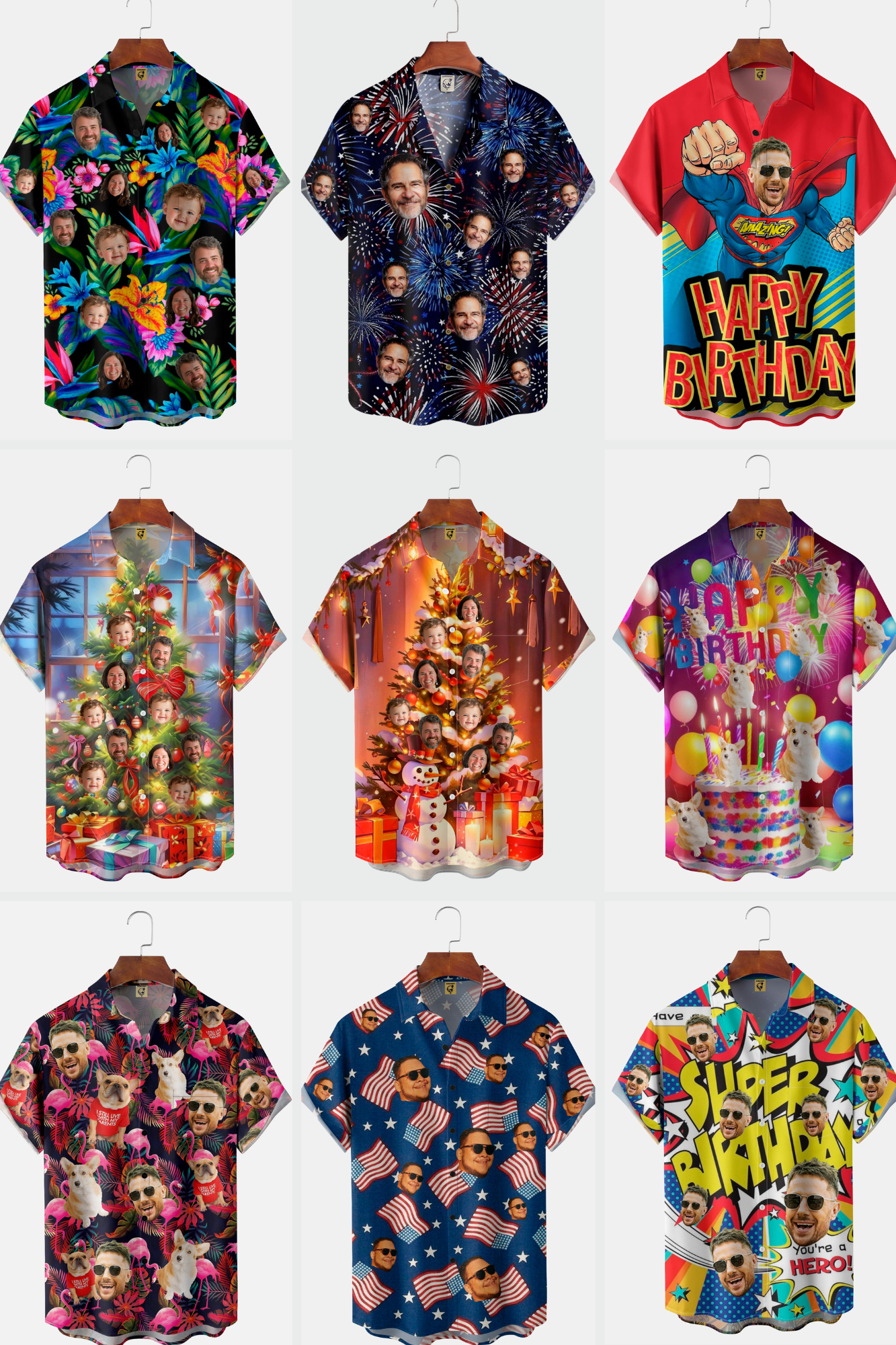 Simply upload your face photo, and we’ll automatically extract it to create unique Hawaiian shirts quickly. This makes for a perfect gift—stylish and personal.